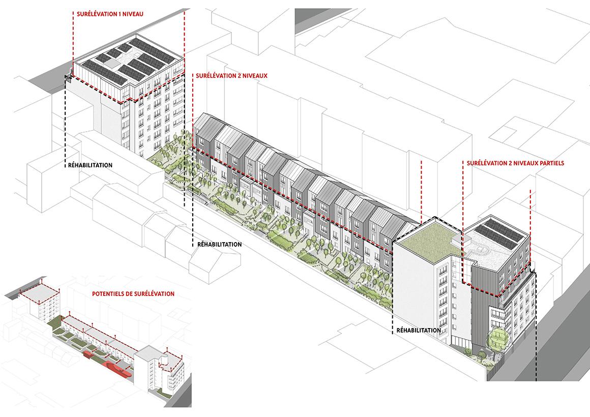 Programme Réhabilitation énergétique d’un ensemble immobilier des années 1980 et création de logements sociaux par surélévations