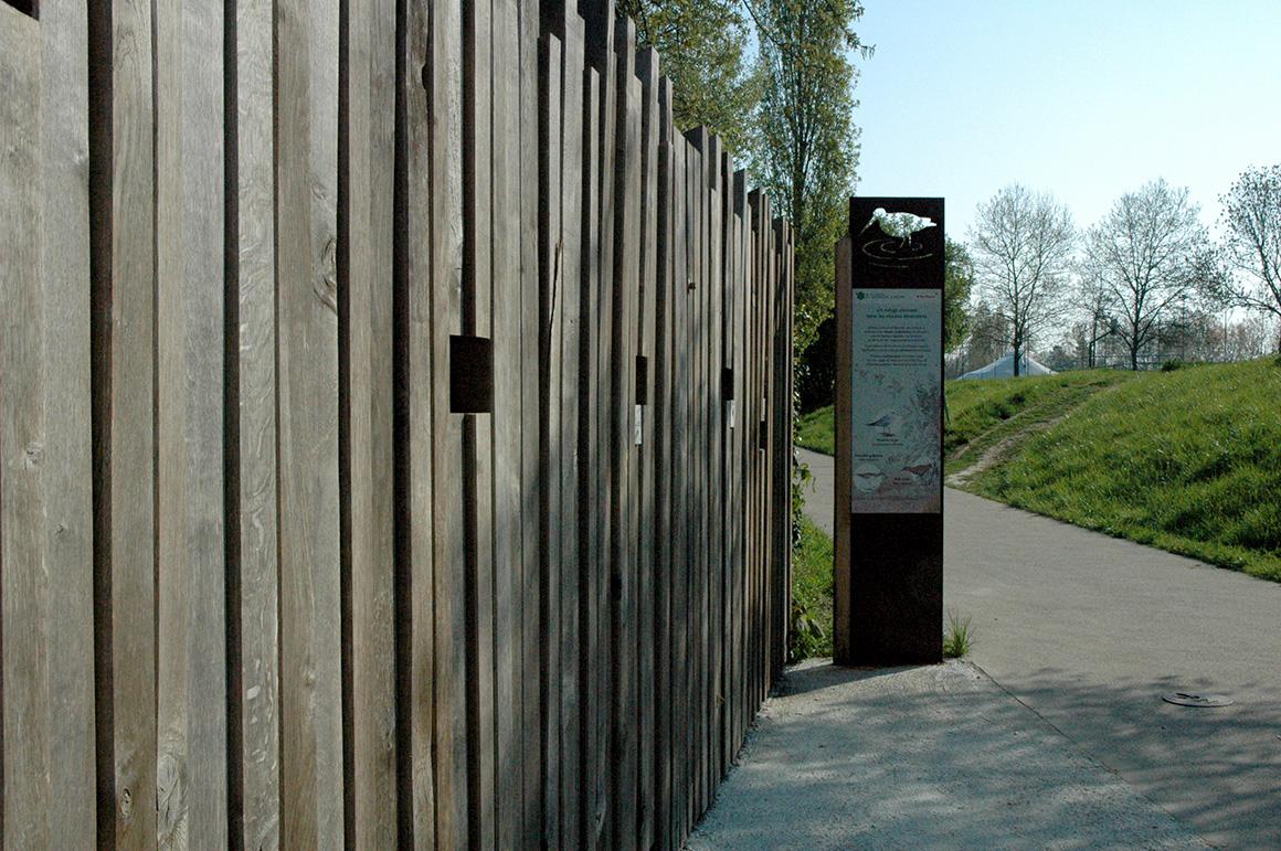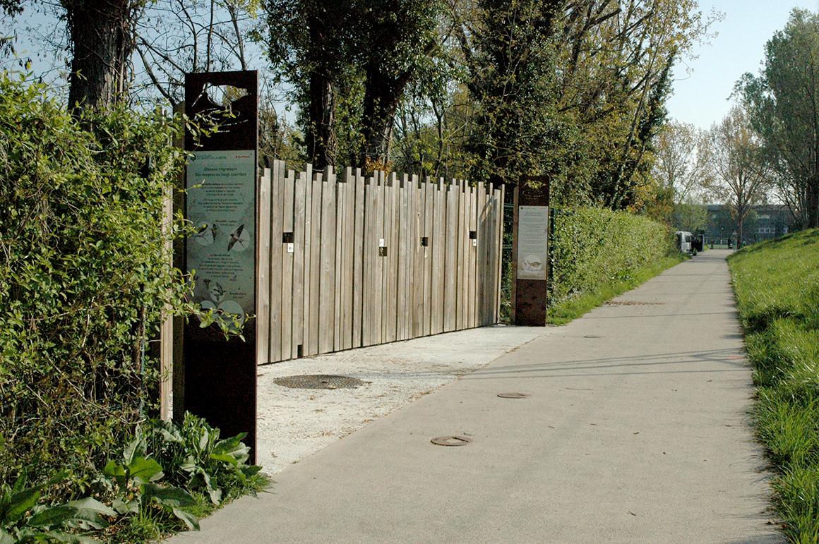 Le programme prévoit plusieurs stations telles que des palissades d’observation, un observatoire, une plateforme d’observation et une aire d’accueil. Le parcours doit s’effectuer aussi bien dans un sens que dans l’autre. Deux entrées sont signalées : une entrée aval (plateforme technique du SIAAP) et une entrée amont (la fenêtre sur le chenal). Tout le long du parcours, des jalons signalent chaque station avec des médaillons au sol. Chaque station indique un imaginaire en lien avec la réserve et ce que l’on peut voir au travers des palissades.