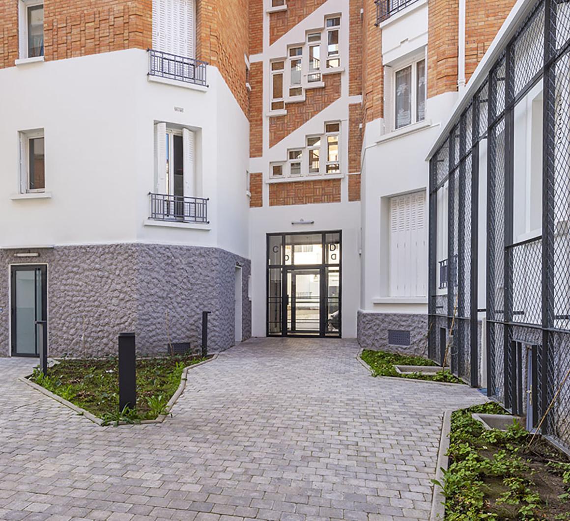 L’opération comporte plusieurs volets complémentaires: la restauration du patrimoine, l’amélioration de l’accessibilité de la résidence (création d’ascenseurs en milieu occupé, nivellement des sols extérieurs), les mises aux normes de sécurité, l’amélioration des performances énergétiques (création de deux chaudières dont une à énergie bois)… les solutions mises en oeuvre sont respectueuses de l’environnement et de la qualité d’usage des logements.