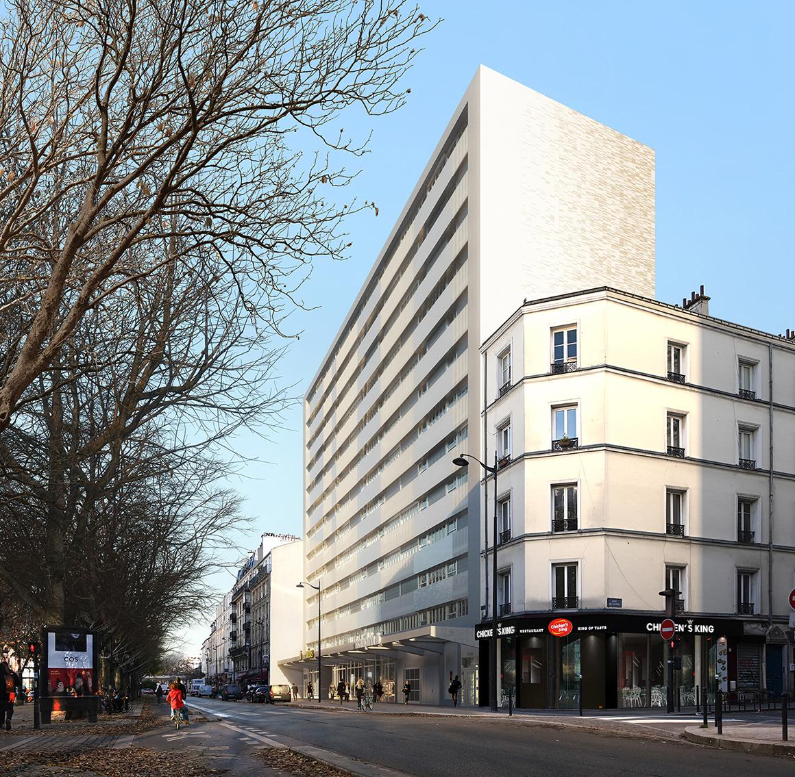 L’architecture des façades de Philippe Schroeder est simple voire brutaliste, les façades étaient à l’origine habillées de carreaux de pâte de verre. Cette architecture rigoureuse résonne avec l’environnement bâti de l’avenue constitué d’un panel d’édifices des années 70 et 80, la plupart d’entre eux déjà rénovés.