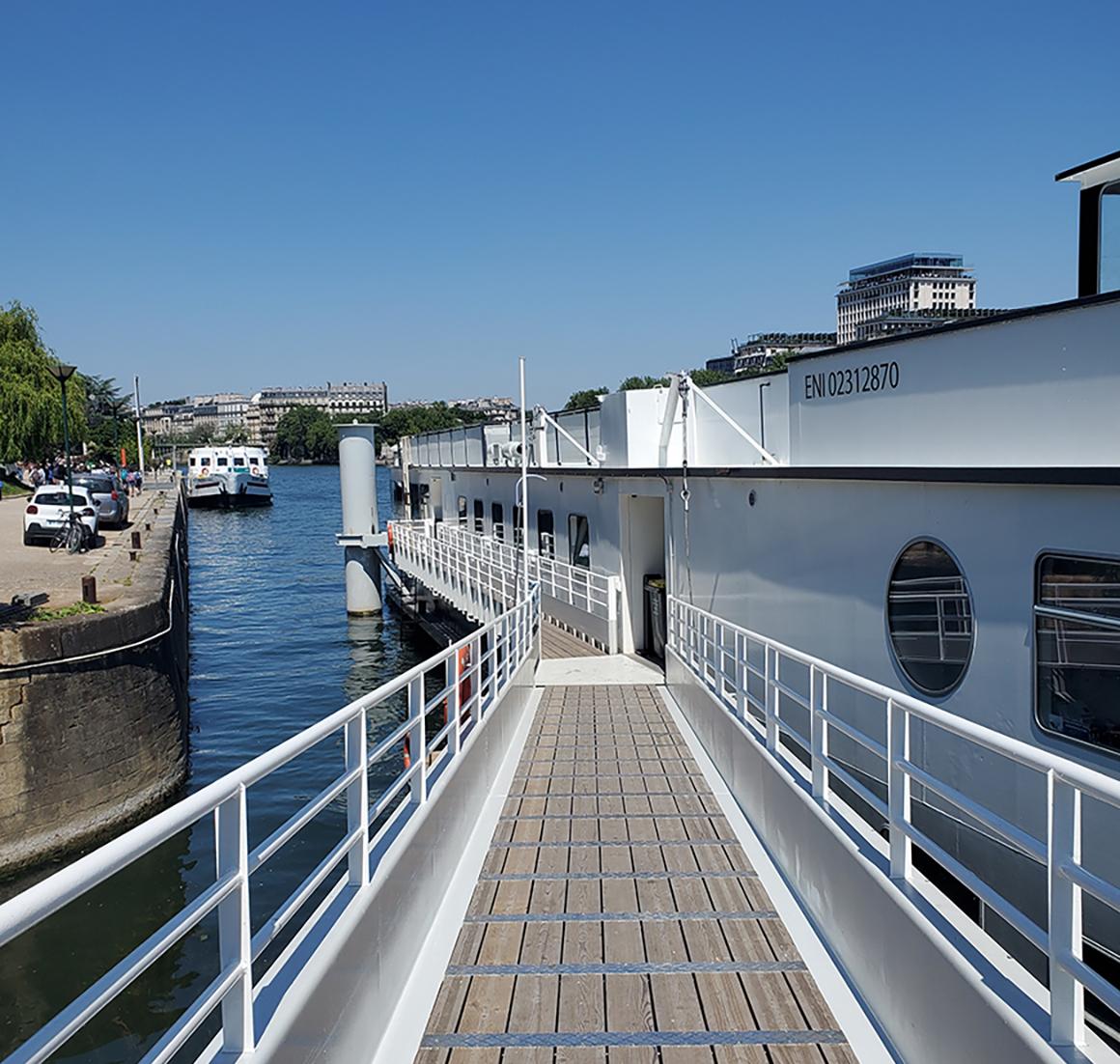 La péniche « Véronique » est prévue remplacer la péniche « walibi » amarrée aujourd’hui quai Saint Bernard à Paris, tribord au sud/ouest et babord au nord/est.