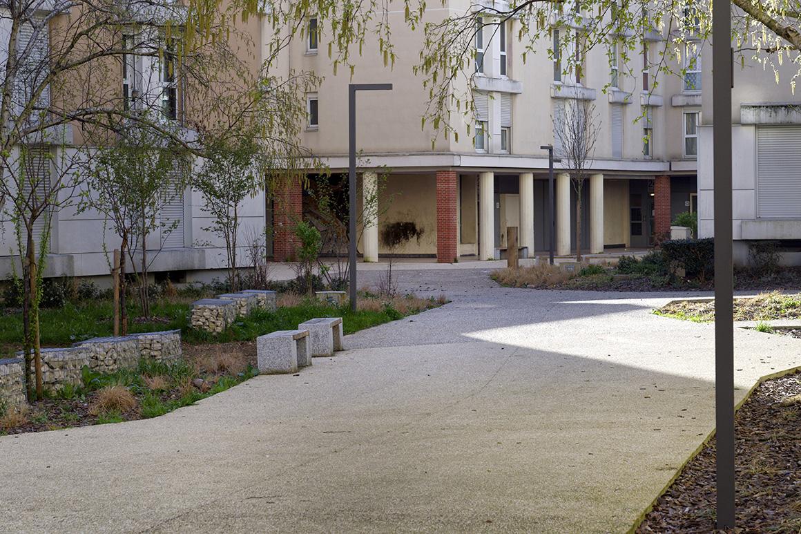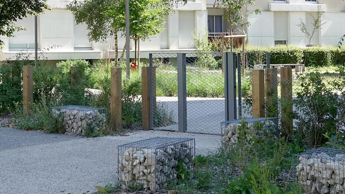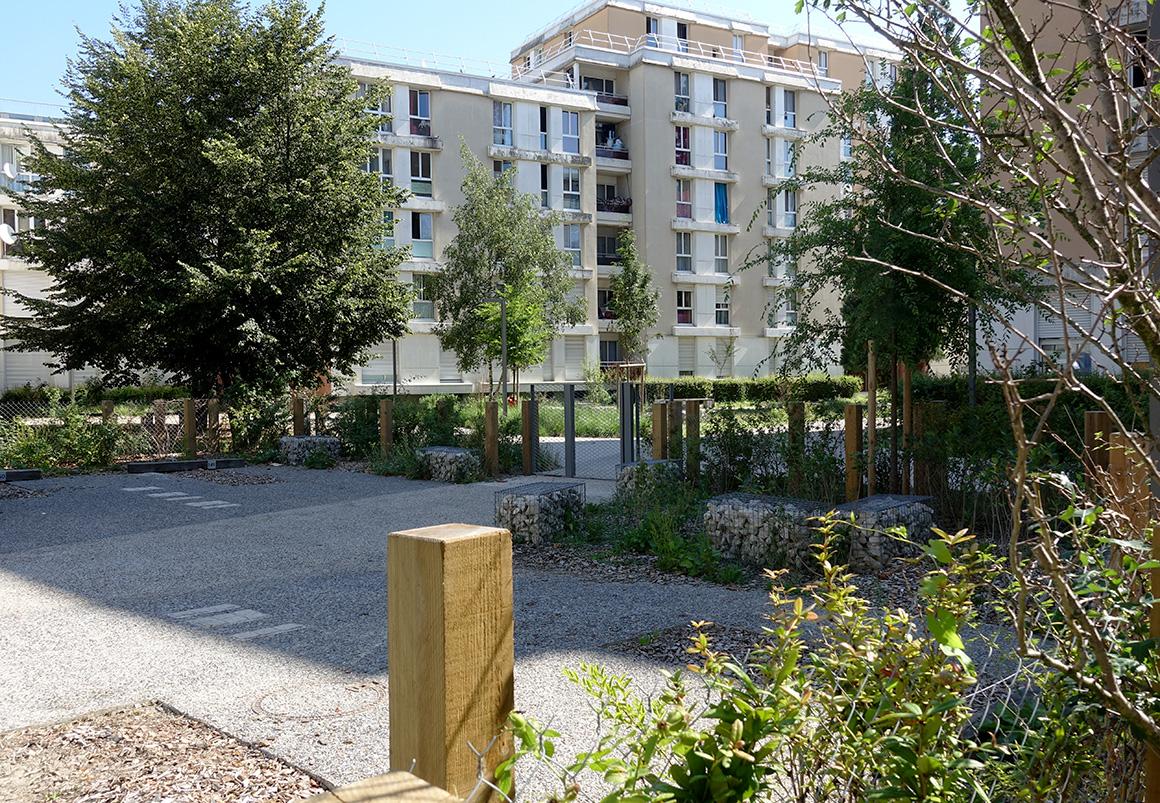 Les paysages et les cheminements à l’intérieur des résidences : cœurs des résidences et stationnements traités comme des «jardins dans le jardin», jardins participatifs, projet dessiné et mis en lumière par les parcours, les cheminements, les usages.