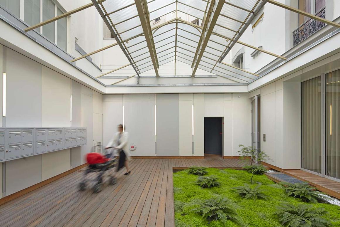 Performances environnementales suivant les exigences du « plan climat », végétalisation de la toiture en coeur d’ilot.