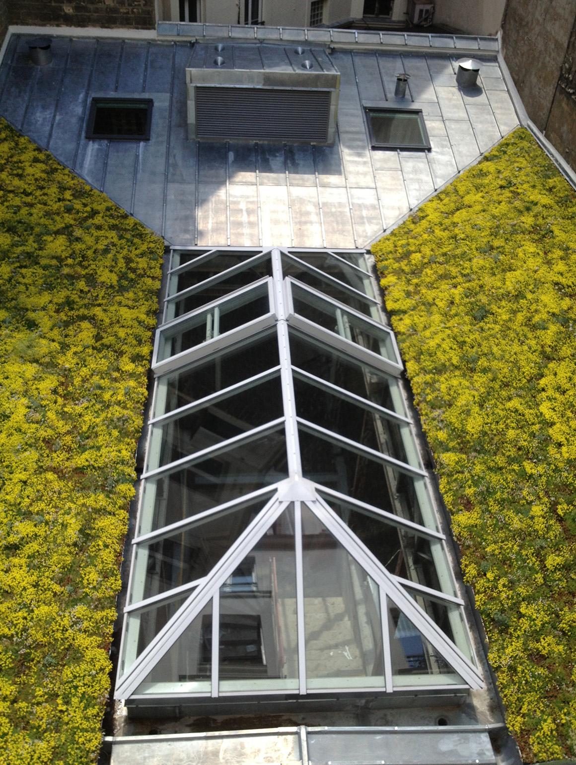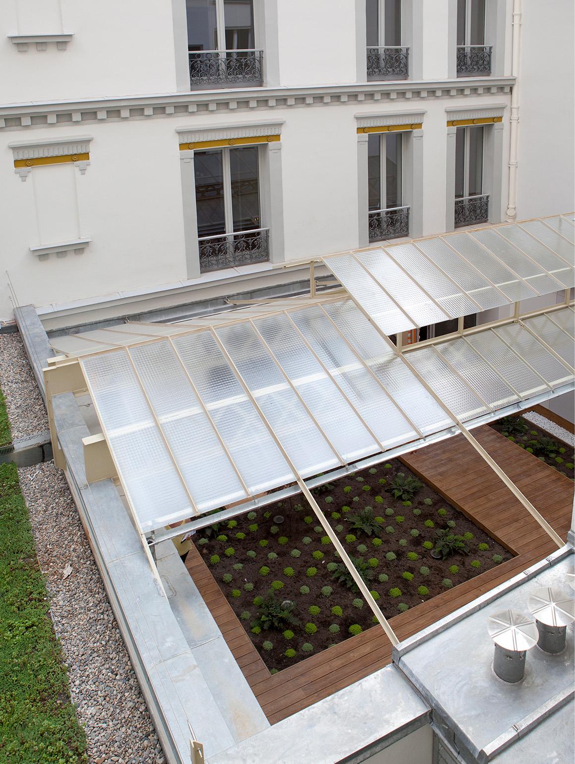 Performances environnementales suivant les exigences du « plan climat », végétalisation de la toiture en coeur d’ilot.