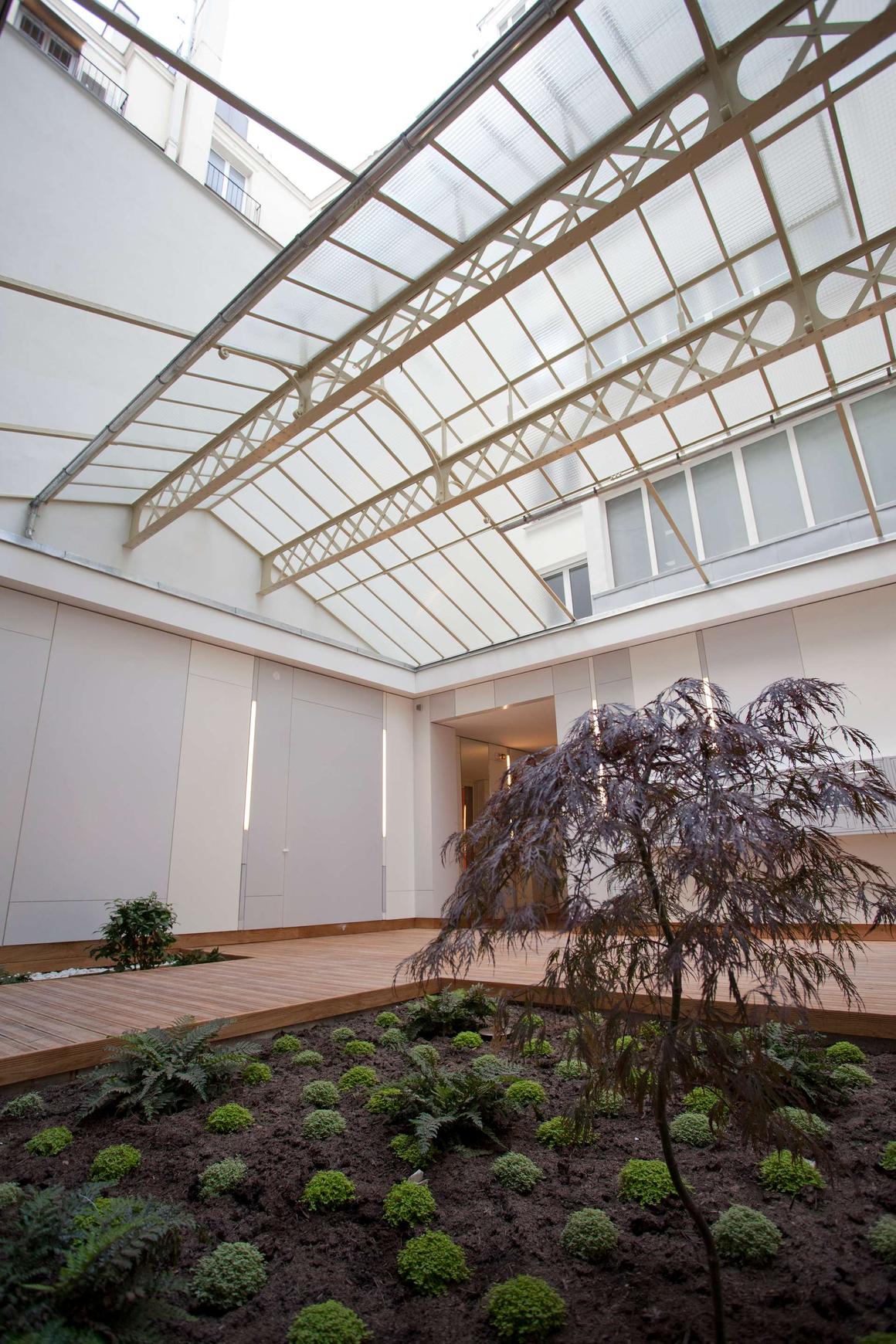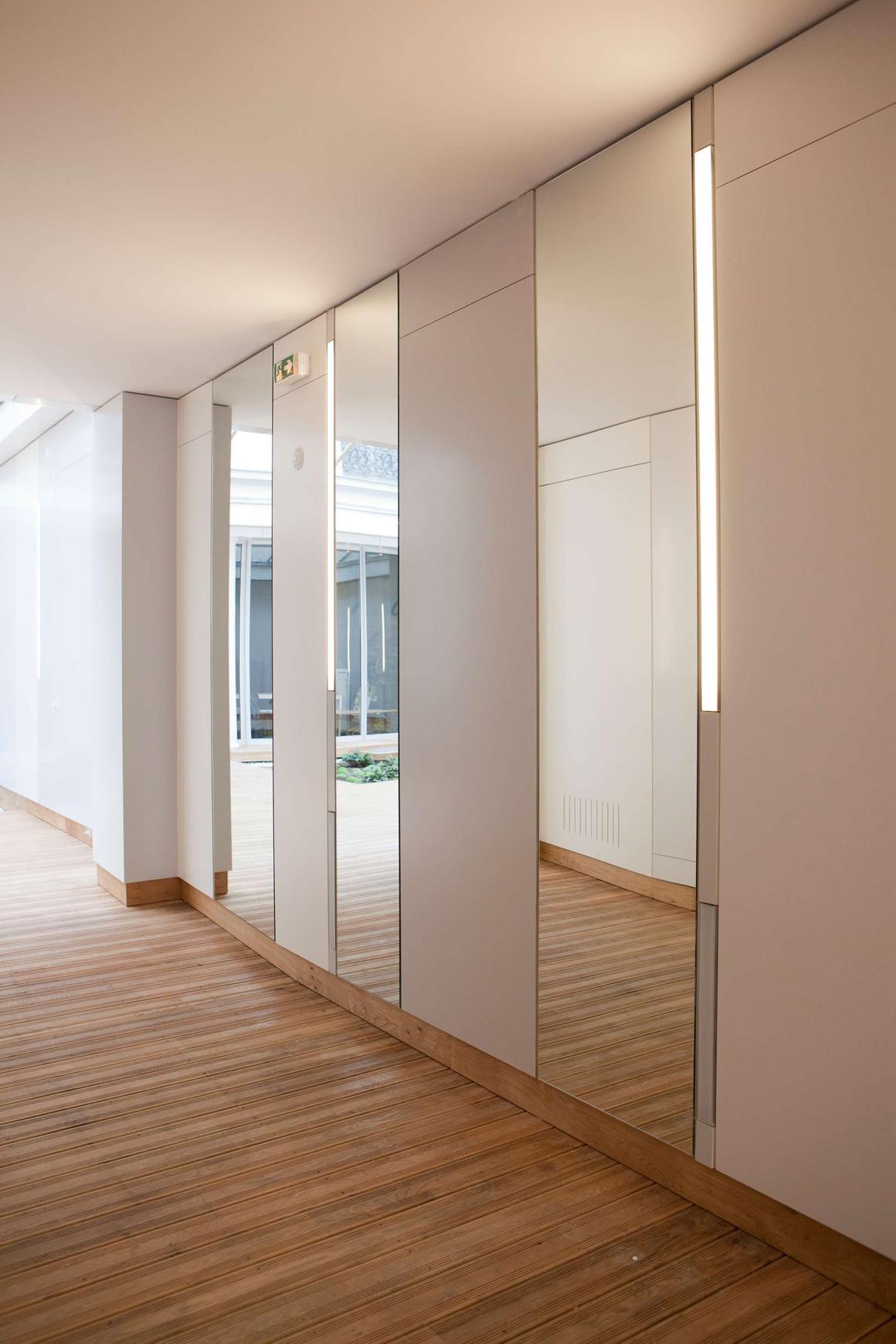 Les éléments de patrimoine remarquable, peu nombreux après l’occupation en bureaux, ont été préservés: grande verrière centrale, escaliers, parquets…
